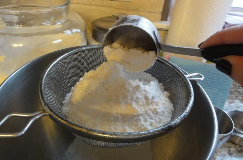 2. En un envase grande, mezclar los ingredientes secos o sea, la azúcar, harina, cocoa, baking powder y baking soda y la sal. Bien mezcladitos. Yo los cierno todos antes para evitar bolitas!!